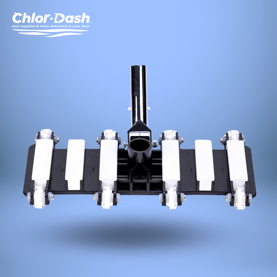 This heavy-duty vacuum head is designed for serious pool cleaning. With a 14" wide cleaning path, eight rows of nylon bristles, and weighted corners, it delivers stable, thorough debris removal on vinyl, concrete, and fiberglass surfaces. The flexible base and 360° swivel joint allow it to glide smoothly along pool floors and slopes, even in larger pools.